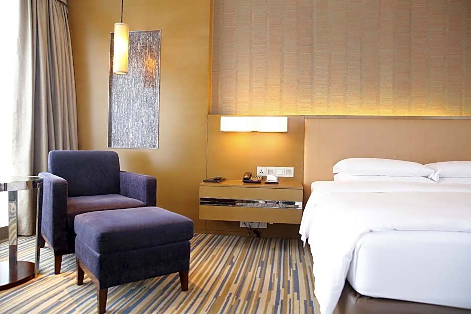 This modern, spacious guest room offers lovely views and a comfortable king-sized bed with Simmons mattress. The marble bath with spa amenities, a daily free newspaper, a selection of Chinese tea, a 40-inch flat-screen TV and free internet service are all provided. This room features access to the Regency Club.